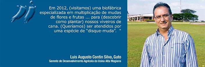 Dentro desse conceito, em 2012, fomos visitar uma biofábrica especializada, à luz do que sabíamos, em multiplicação de mudas de flores e frutas. Lembro-me de ter comentado que o motivo da nossa visita era para ver o que teríamos que fazer para plantarmos todos os nossos viveiros de cana, não só os primários, como também os secundários – algo em torno de 1.500 hectares por ano – com plântulas. Disse que queria ser atendido por uma espécie de “disque-muda”.